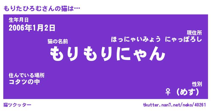 | ポケモン風あだ名 | 『モリチュウ』『モリタダネ』 |