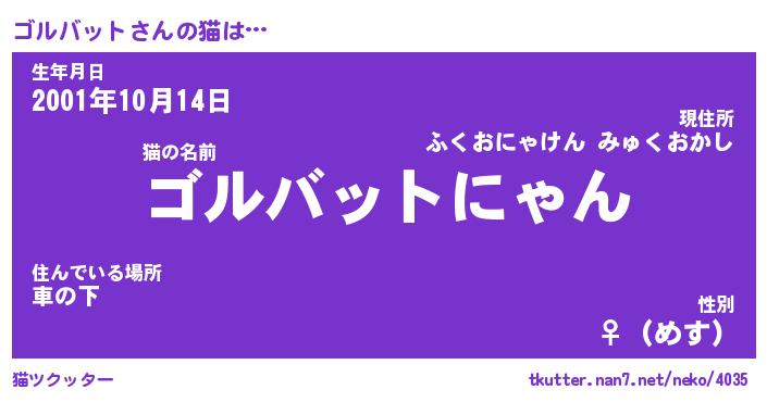 | 女子向けラノベタイトル風あだ名 | 『(仮)ゴルバットのやんごとなき事情』 |