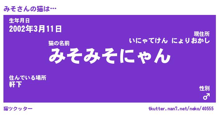 | ポケモン風あだ名 | 『ミソチュウ』『ミソダネ』『ヒミソ』 |