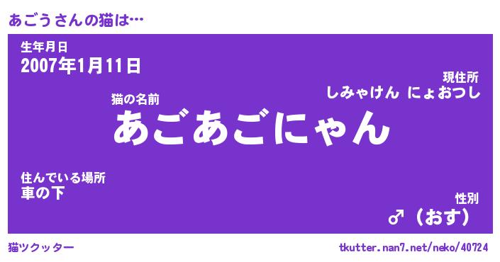 | ファンタジー風あだ名 | 『アゴフェル』『エターナルアゴウー』 |