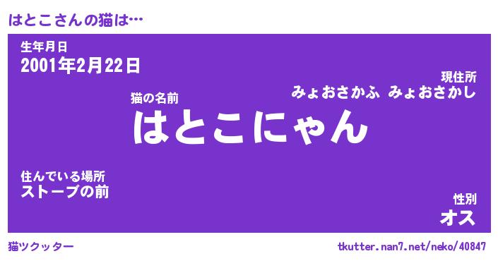 | 生年月日? …「くろねこ」 | 8月01日 10:16 |