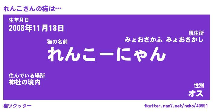 | 意味不明あだ名 | 『ペロリンれんこ』『れんこフォーエバー』 |