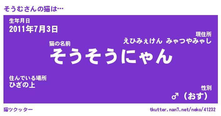| ポケモン風あだ名 | 『ソウチュウ』『ソウムダネ』 |