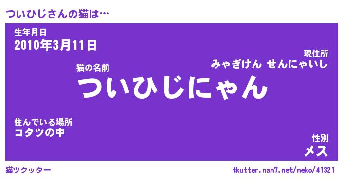 | ファンタジー風あだ名 | 『ツイフェル』『エターナルツイヒジー』 |