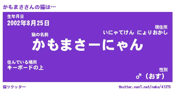 | ポケモン風あだ名 | 『カモチュウ』『カモマダネ』 |