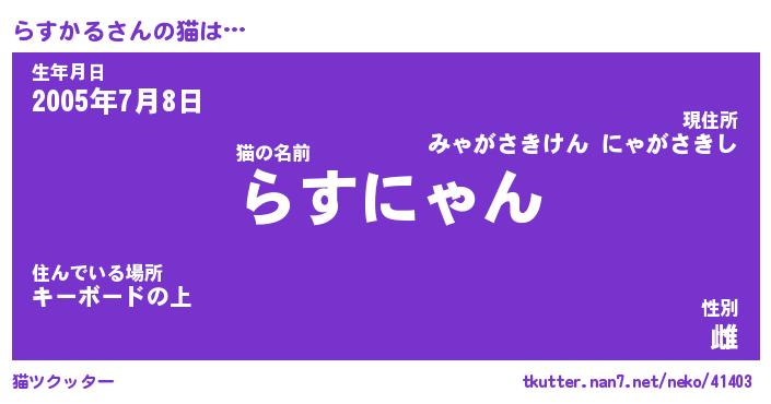 | ポケモン風あだ名 | 『ラスチュウ』『ラスカダネ』 |