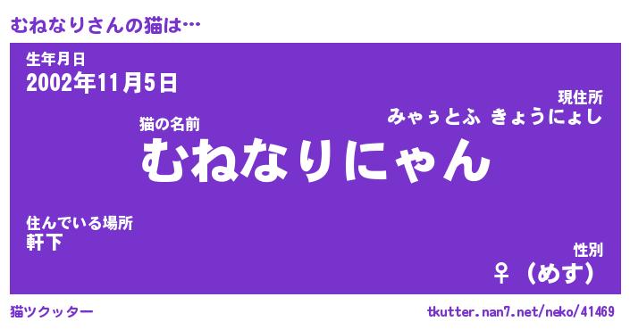 | 意味不明あだ名 | 『ペロリンむねなり』『永久保存むねなり』 |