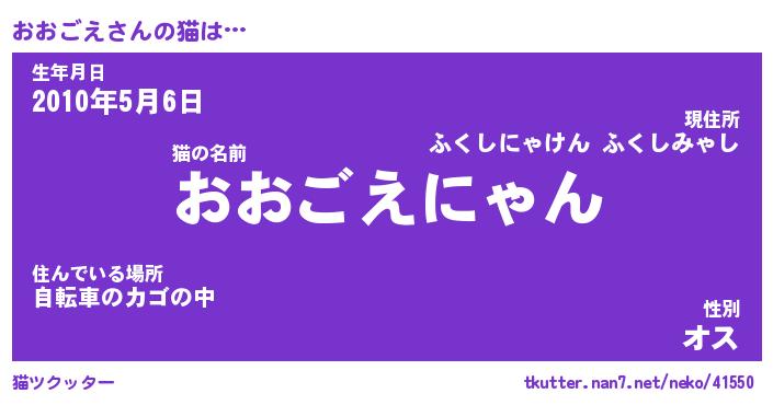 | 意味不明あだ名 | 『ペロリンおおごえ』『永久保存おおごえ』 |