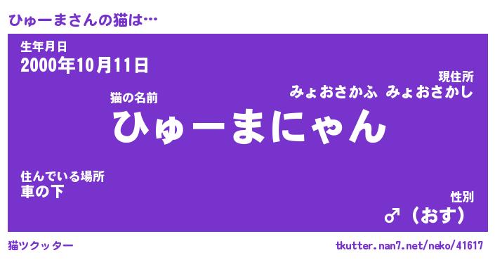 | 意味不明あだ名 | 『ペロリンひゅーま』『永久保存ひゅーま』 |