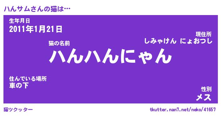 | ポケモン風あだ名 | 『ハンチュウ』『ハンサダネ』 |