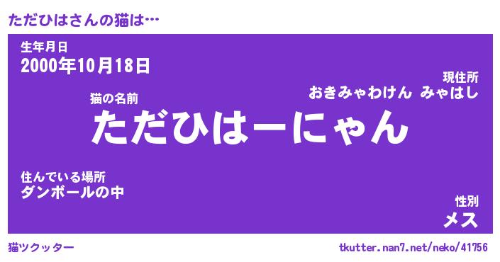| ポケモン風あだ名 | 『タダチュウ』『タダヒダネ』 |