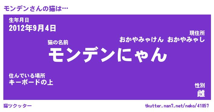 | 意味不明あだ名 | 『ペロリンモンデン』『永久保存モンデン』 |