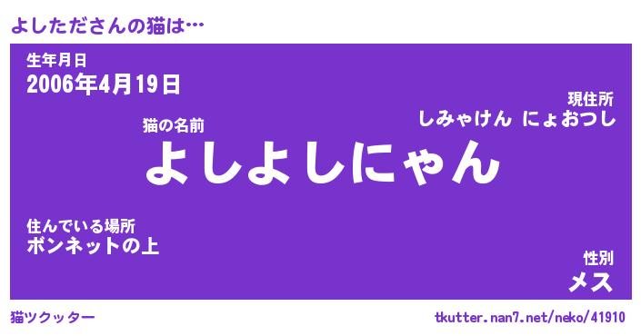 | ポケモン風あだ名 | 『ヨシチュウ』『ヨシタダネ』 |