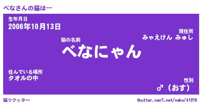 | 意味不明あだ名 | 『ペロリンべな』『べなフォーエバー』 |