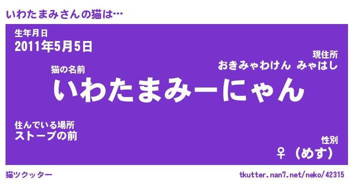 | 2回繰り返すあだ名 | 『いわいわ』『いいわわ』『こんこん』 |