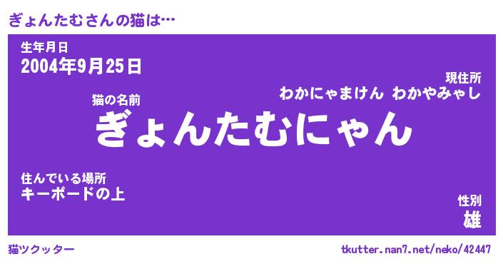 | 男性向けラノベタイトル風あだ名 | 『ぎょんたむの憂鬱』 |