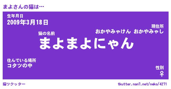 | 2回繰り返すあだ名 | 『まよまよ』『ままよよ』『にたにた』 |