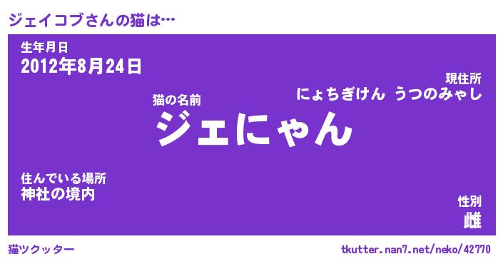 | ファンタジー風あだ名 | 『ジェフェル』『エターナルジェイコブー』 |