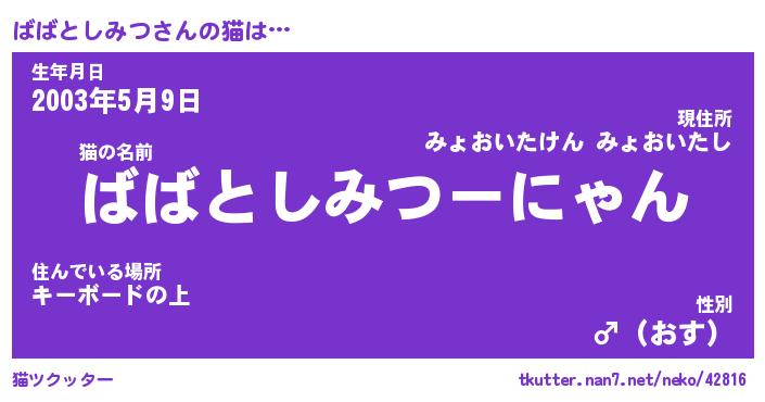 | 生年月日? …「くろねこ」 | 8月01日 10:16 |