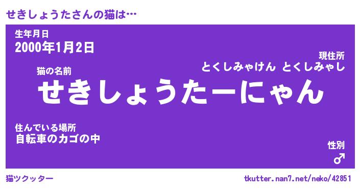 | 恥ずかしいあだ名 | 『プリティーせきしょうた』『せきっちょ』 |