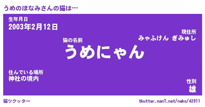 | ファンタジー風あだ名 | 『ウメフェル』『ファントムウメス』 |