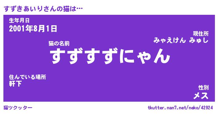 | ヘコむあだ名 | 『すずっふぃ~』『なまこ酢』 |