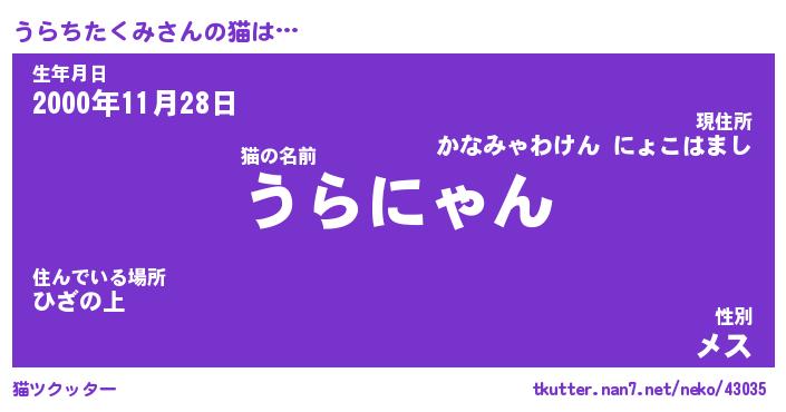 | 2回繰り返すあだ名 | 『うらうら』『ううらら』 |