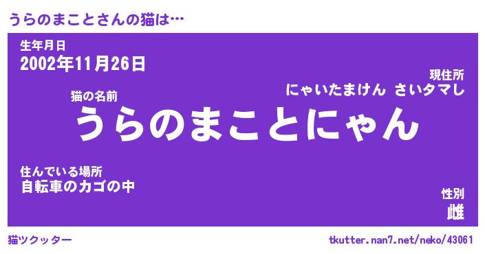 | 生年月日? …「くろねこ」 | 8月01日 10:16 |