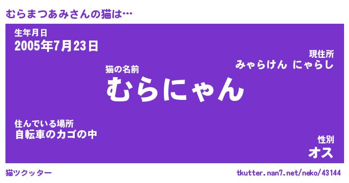| ポケモン風あだ名 | 『ムラチュウ』『ムラマダネ』 |