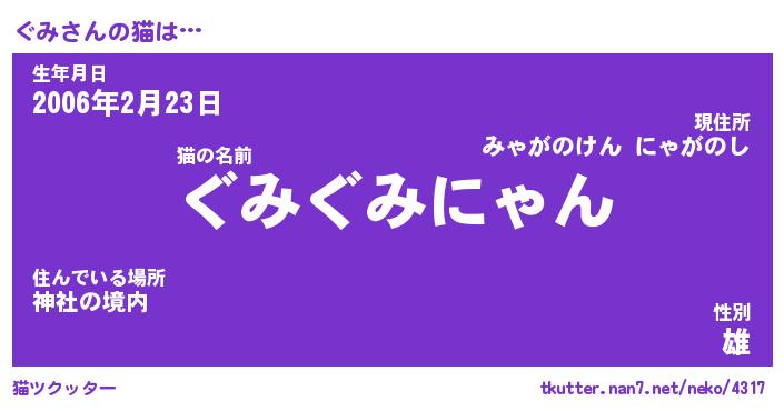| 2回繰り返すあだ名 | 『ぐみぐみ』『ぐぐみみ』『ぬれぬれ』 |