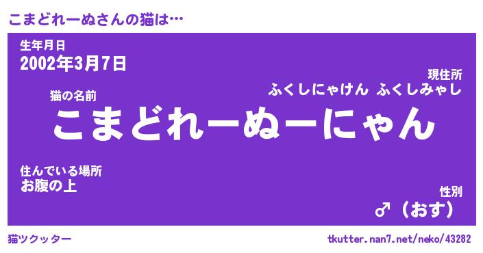 | 生年月日? …「くろねこ」 | 8月01日 10:16 |