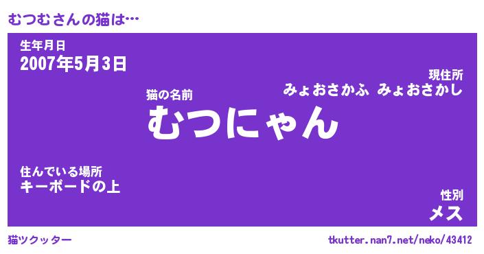 | ポケモン風あだ名 | 『ムツチュウ』『ムツムダネ』 |