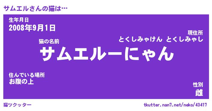 | 意味不明あだ名 | 『ペロリンサムエル』『永久保存サムエル』 |