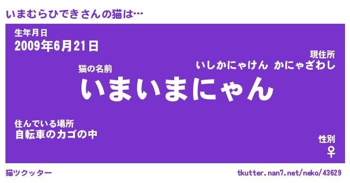 | ヘコむあだ名 | 『いまにー』『豆乳』『いまっ子』 |