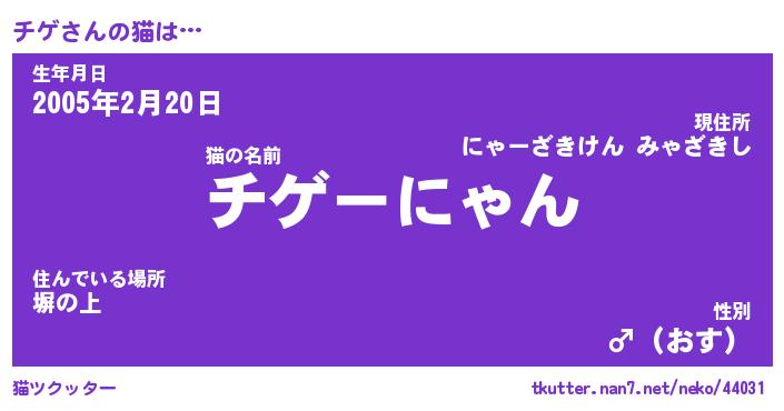 | ポケモン風あだ名 | 『チゲチュウ』『チゲダネ』『ヒチゲ』 |