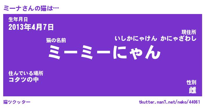| 2回繰り返すあだ名 | 『ミーミー』『ミミーー』『ぬれぬれ』 |