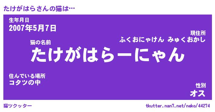 | ファンタジー風あだ名 | 『タケフェル』『エターナルタケガハラー』 |