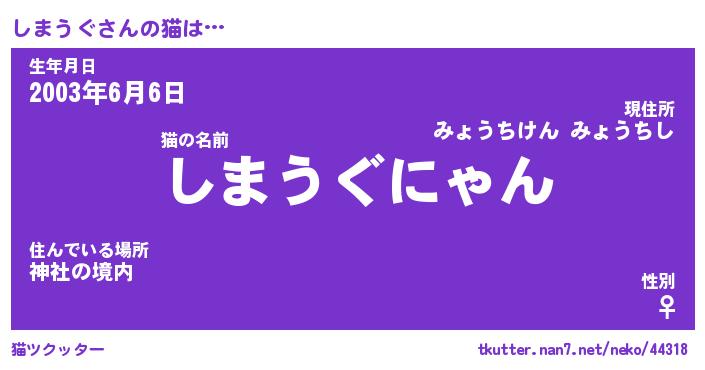 | 男性向けラノベタイトル風あだ名 | 『しまうぐの憂鬱』 |