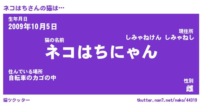 | 意味不明あだ名 | 『ペロリンネコはち』『永久保存ネコはち』 |