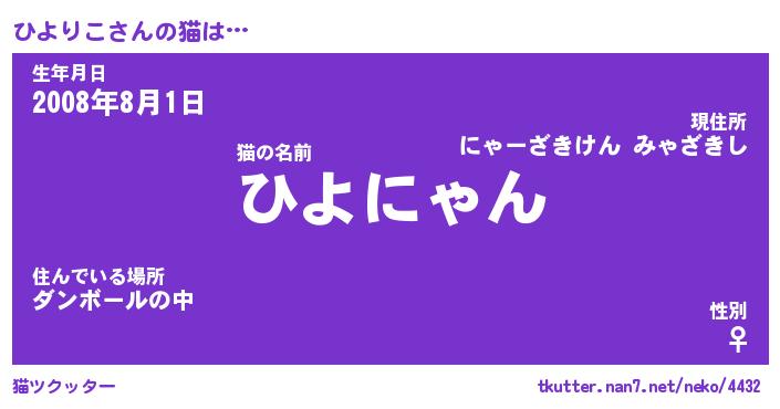 | ファンタジー風あだ名 | 『ヒヨフェル』『エターナルヒヨリコー』 |