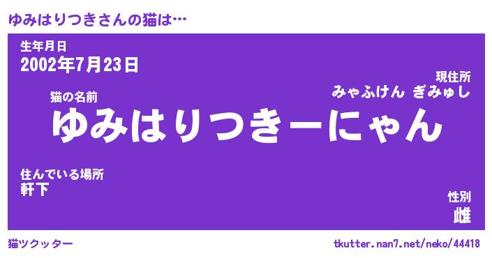 | ツイッター | ゆみはりつきさんのツイッターID『fukuyoka_nyan』 |