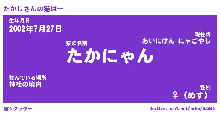 | 意味不明あだ名 | 『ペロリンたかじ』『たかじフォーエバー』 |