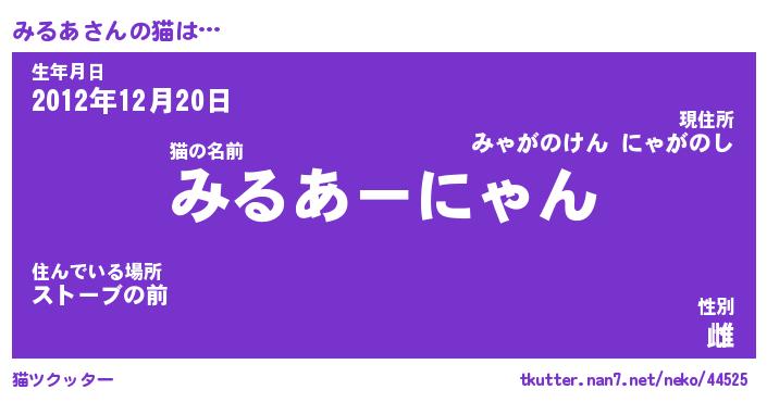 | 意味不明あだ名 | 『ペロリンみるあ』『みるあフォーエバー』 |