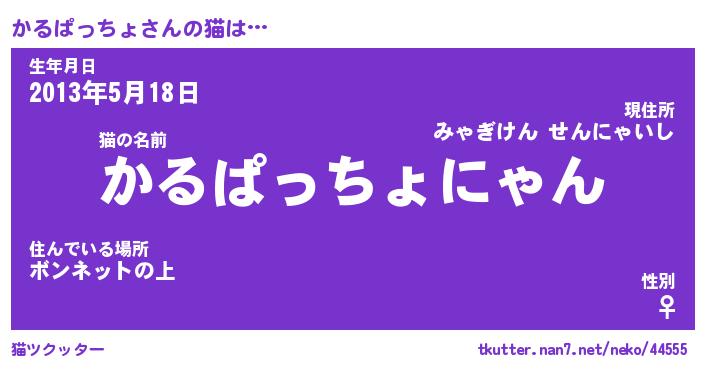 | 男性向けラノベタイトル風あだ名 | 『かるぱっちょの憂鬱』 |