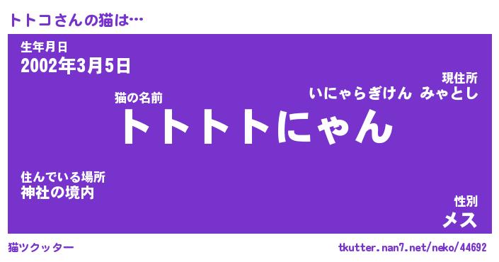 | ポケモン風あだ名 | 『トトチュウ』『トトコダネ』 |
