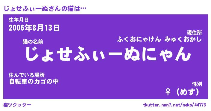 | 恥ずかしいあだ名 | 『プリティーじょせふぃーぬ』『じょちん』 |