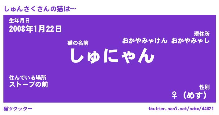 | 2回繰り返すあだ名 | 『しゅしゅ』『ししゅゅ』『ぬれぬれ』 |