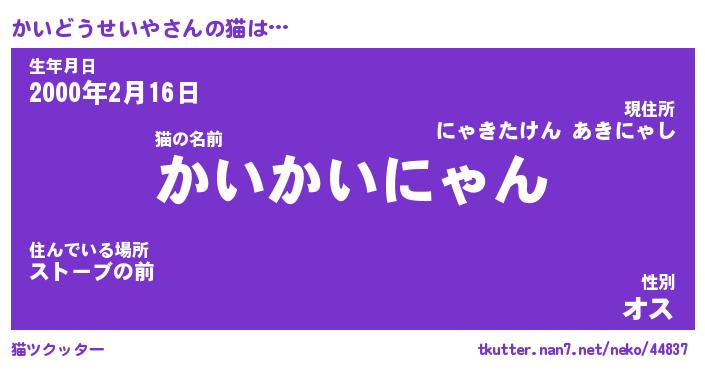 | ヘコむあだ名 | 『かいにゅー』『つくし』『かいっ子』 |