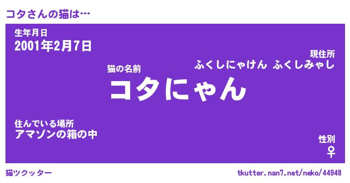 | 意味不明あだ名 | 『ペロリンコタ』『コタフォーエバー』 |