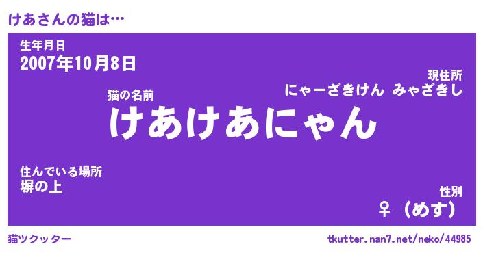 | 2回繰り返すあだ名 | 『けあけあ』『けけああ』『うねうね』 |